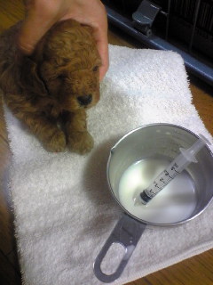 スーは、時間があれば小屋に入ってお乳をあげてます。